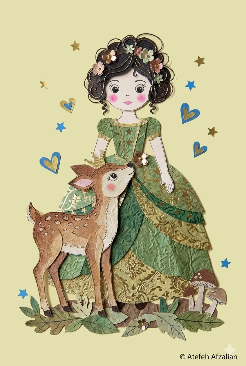 Da ging die Tür auf, und der König trat herein, und da stand ein Mädchen, das war so schön, wie er noch keins gesehen hatte. Das Mädchen erschrak, als es sah, daß nicht sein Rehlein, sondern ein Mann hereinkam, der eine goldene Krone auf dem Haupt hatte. Aber der König sah es freundlich an, reichte ihm die Hand und sprach: